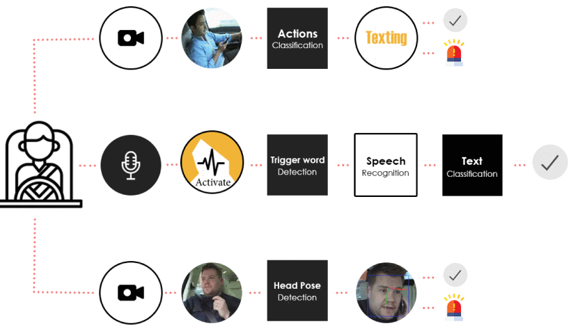 Multimodel system for driver distraction detection and elimination