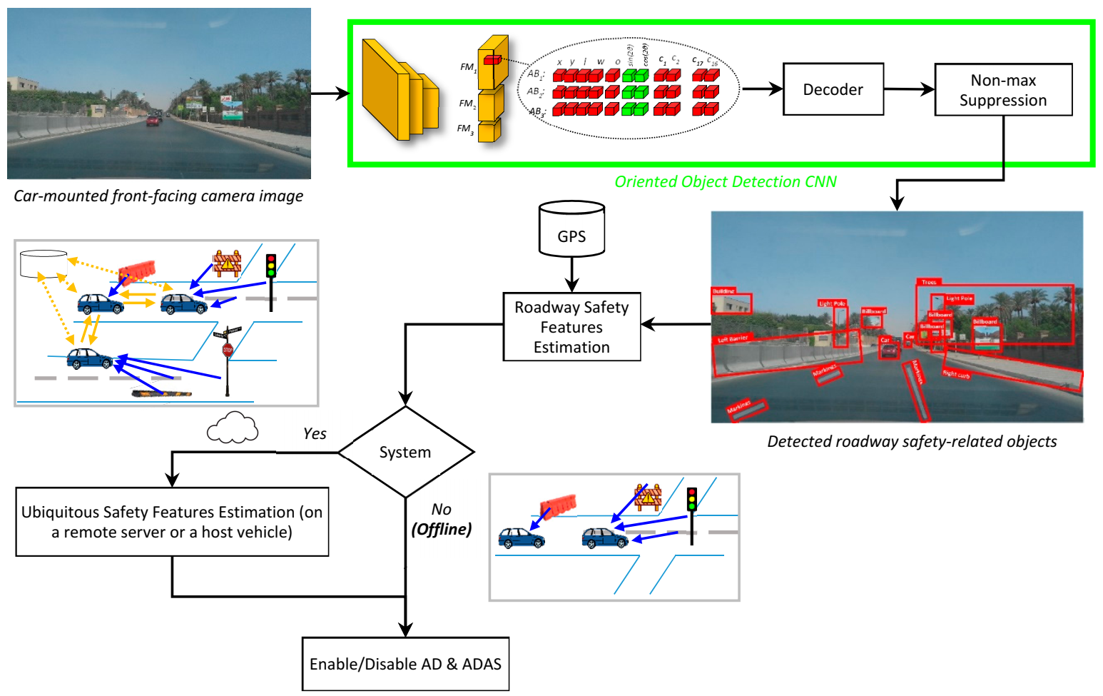 This paper introduces an automatic roadway safety features detection approach using an oriented (or rotated) object detection model.